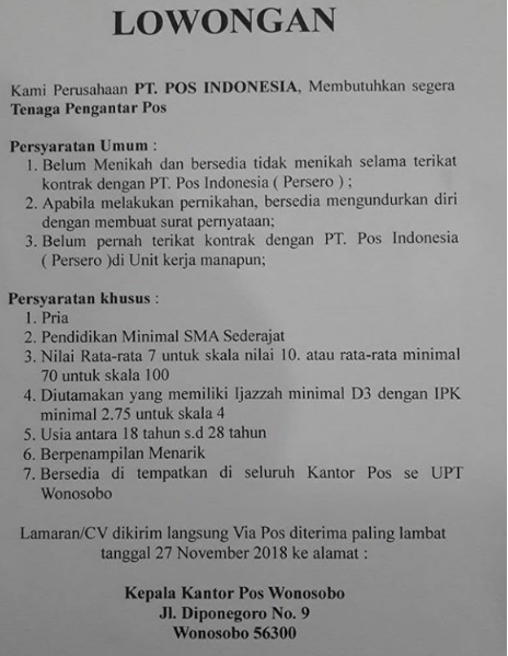 Lulusan sma di wonosobo, jawa tengah cari di antara 20.000+ lowongan kerja terbaru pekerjaan penuh waktu, sementara dan paruh waktu langganan informasi lowongan kerja cepat & gratis pemberi kerja terbaik di wonosobo, jawa tengah kerja: Parman kilometer 3, mendolo, bumireso. Berikut update loker jateng 2021 loker wonosobo 2021, coba lowongan kerja di rekrutmen rumah sakit islam wonosobo jawa tengah. Persyaratan pendidikan minimal d3/s1 semua jurusan, dengan minimal ipk 2,50. Rsi yang dimiliki oleh yayasan rumah sakit islam wonosobo ini beralamat di jalan letjen s.